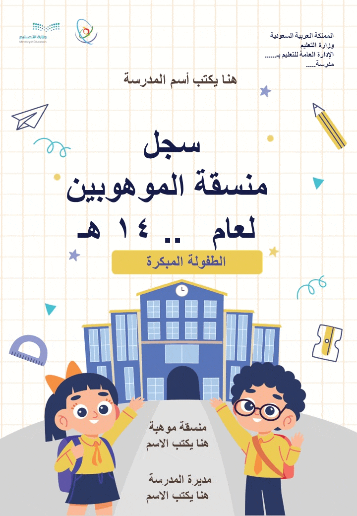 ملف سجل منسقة موهبة للطفولة المبكرة 1447هـ ملف رقمي جاهز للطباعة والتعديلاحصل على ملف سجل منسقة الموهوبات لعام ١٤٤٧، وهو عبارة عن ملف شامل ومتكامل يتك...