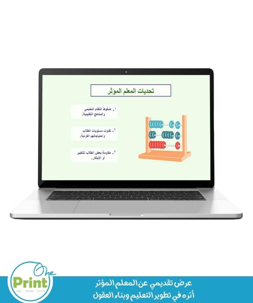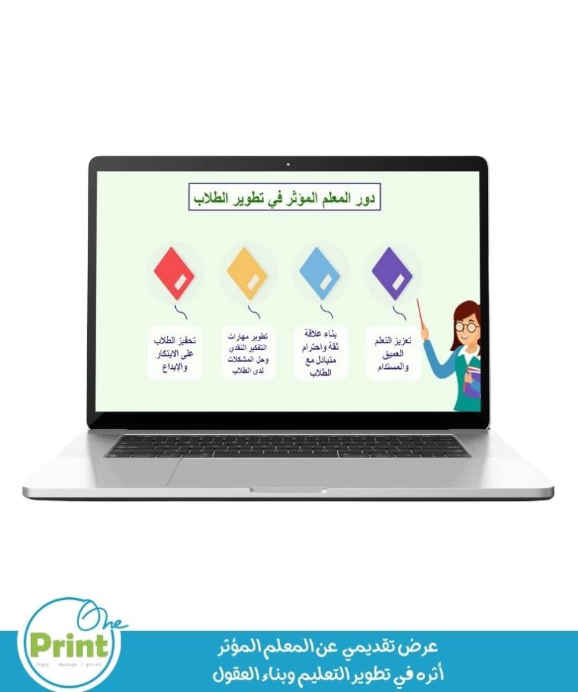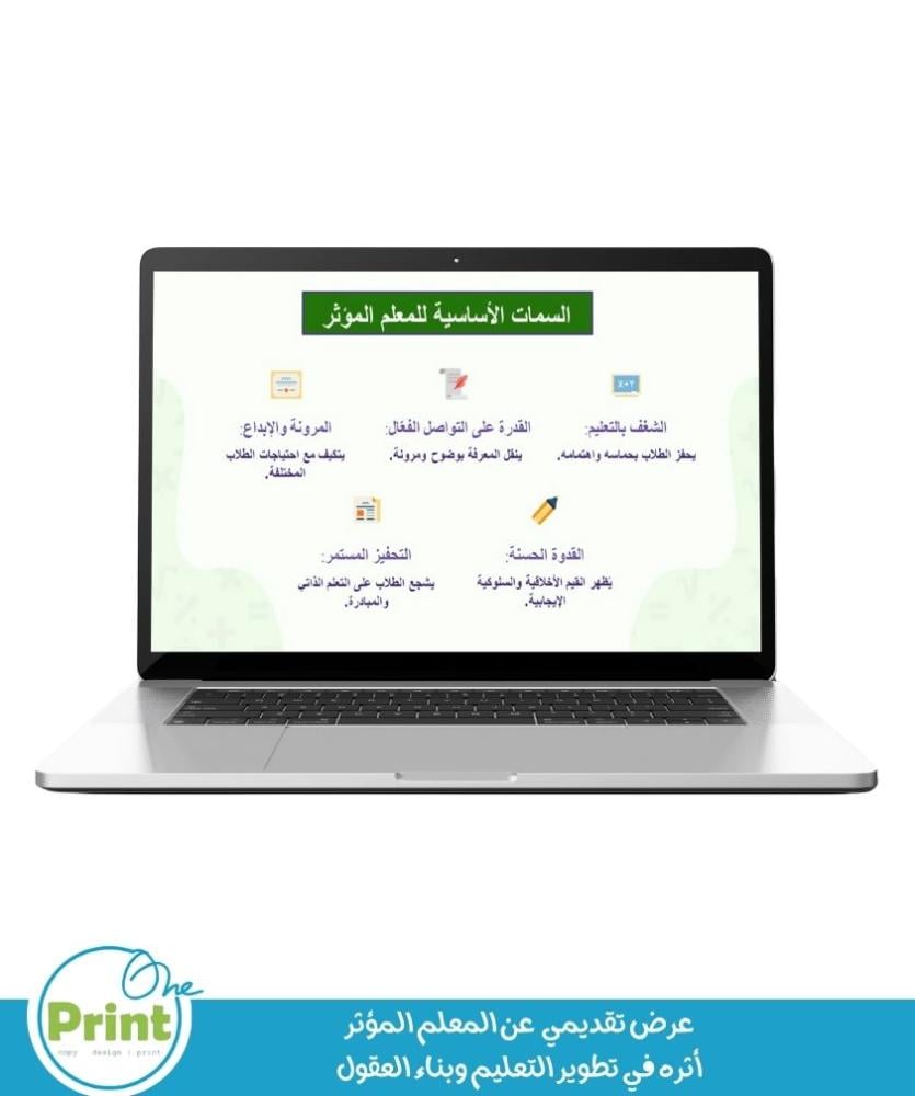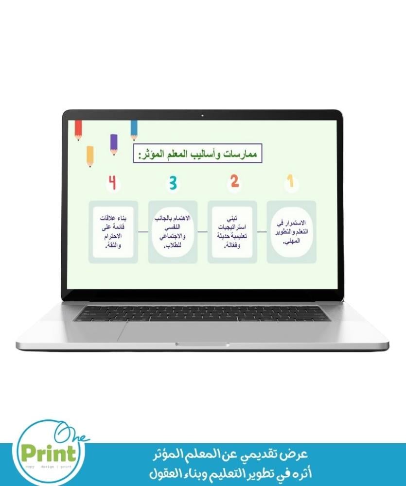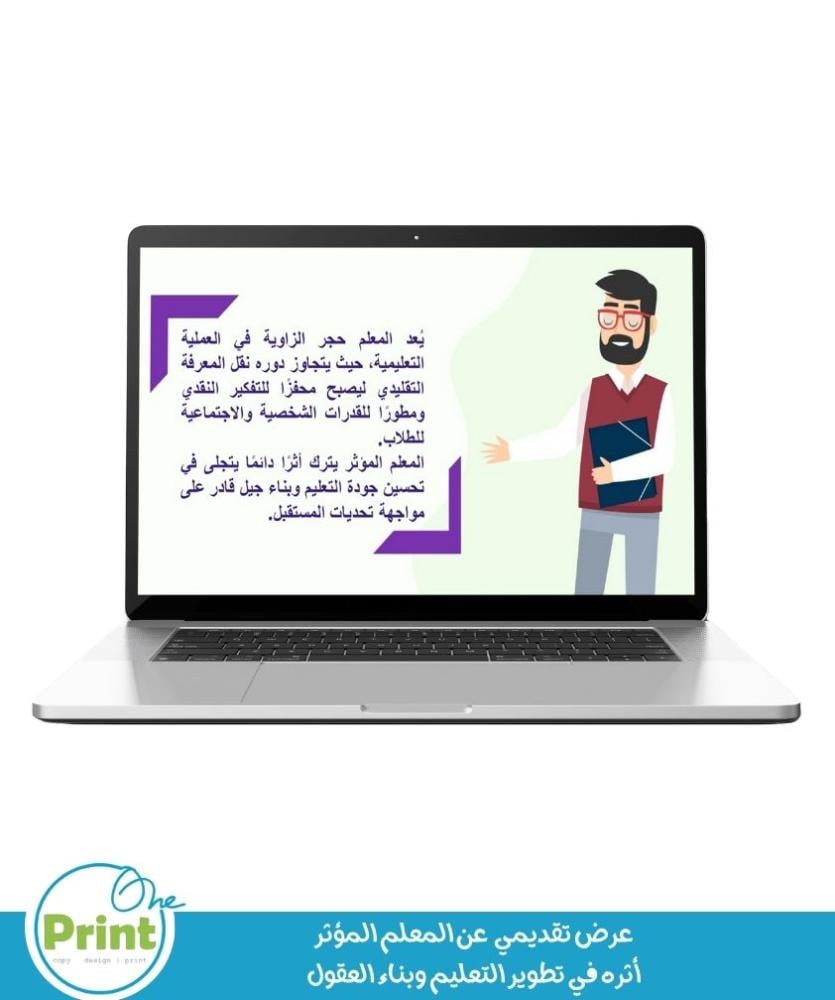 عرض تقديمي ملهم بعنوان "المعلم المؤثر: أثره في تطوير التعليم وبناء العقول"