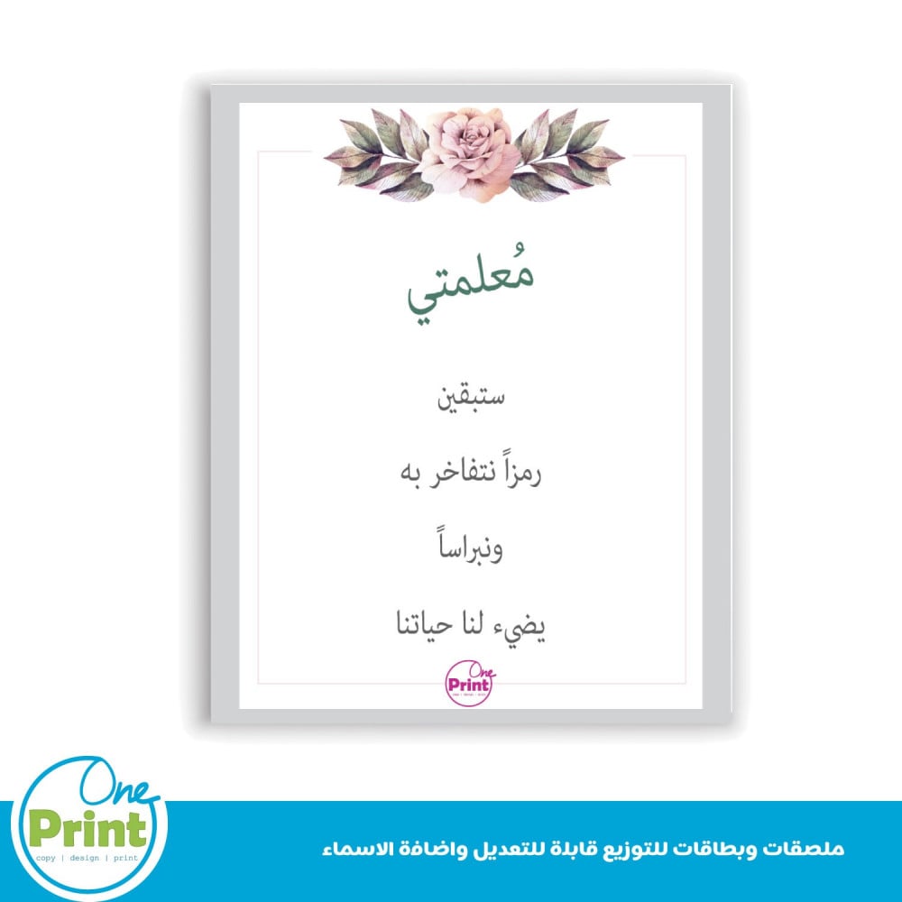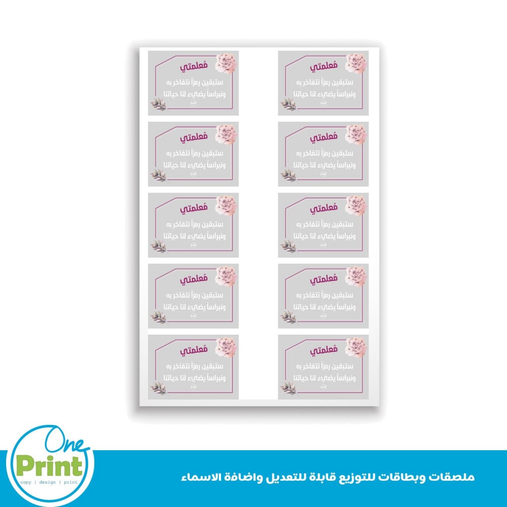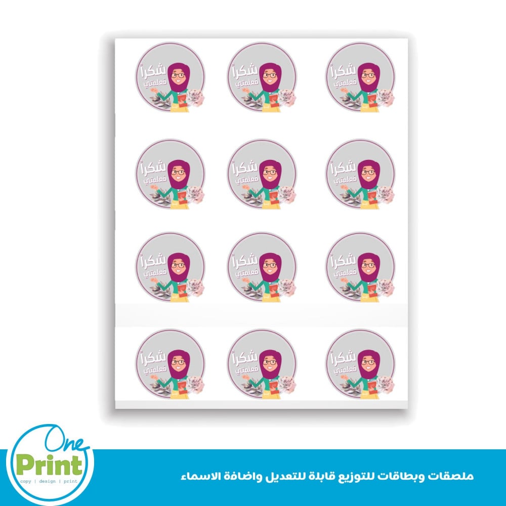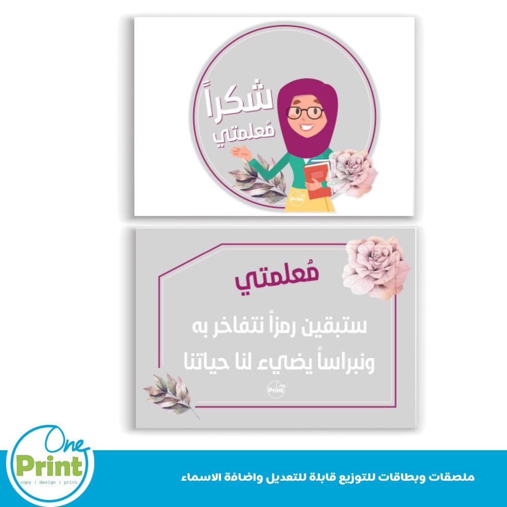 ملصقات وبطاقة ليوم المعلم قابلة للتعديل الاسماء